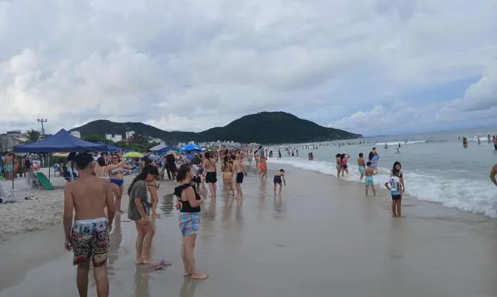 O público que estava no lado norte da praia dos Ingleses, parou, para observar a apresentação do casal de golfinho, cenas lindas, muitas gente ficou olhando, tirando fotos da apresentação natural do casal de golfinho no canto norte da praia.